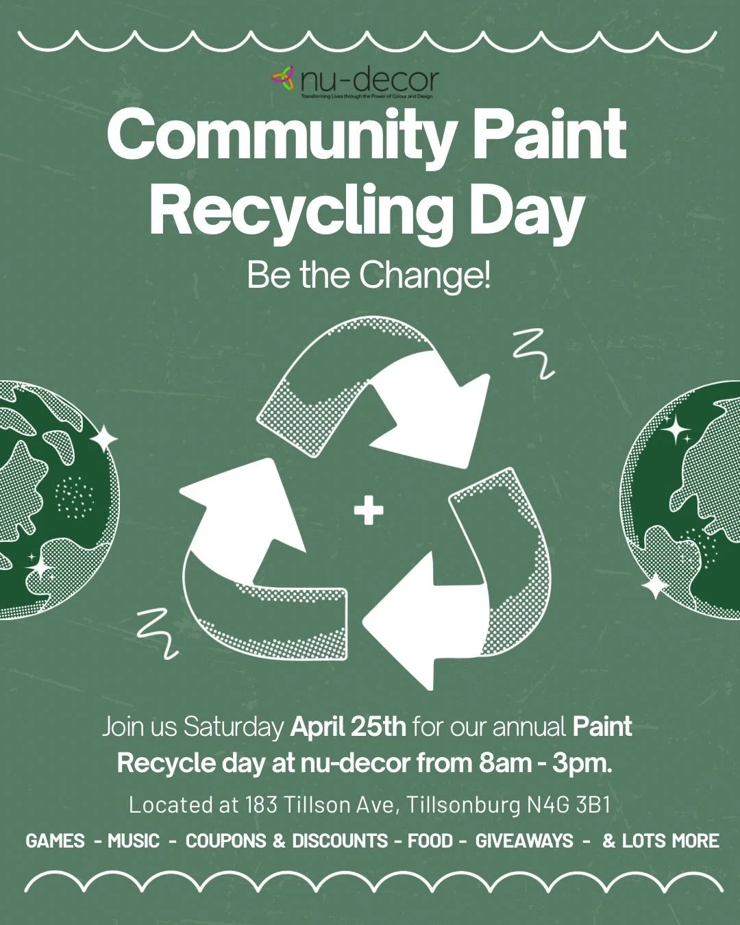 Join us Saturday April 25th for our annual Paint Recycling Day at nu-decor from 8AM - 3PM!